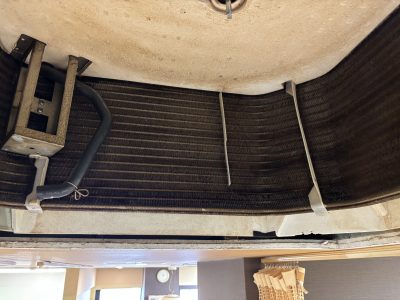 新規オープンして丸6年、以前入っていたテナント様を含めると10年以上本格的なクリーニングをしたことがなく、何となく効きが弱くなったような気がするとご相談をいただき、分解クリーニング施工となりました。
